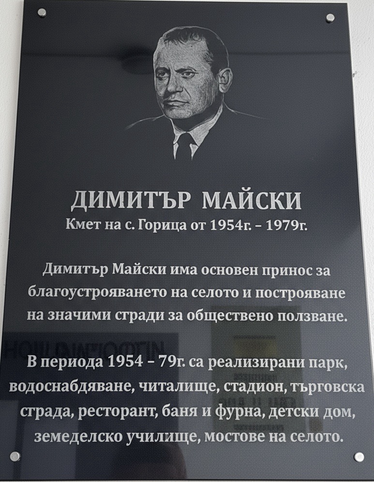 Димитър Майски заема особено място в историята на село Горица. Неговото дългогодишно кметуване бележи период на подем, развитие и целенасочено благоустрояване, който трайно променя облика на селото и подобрява живота на неговите жители.